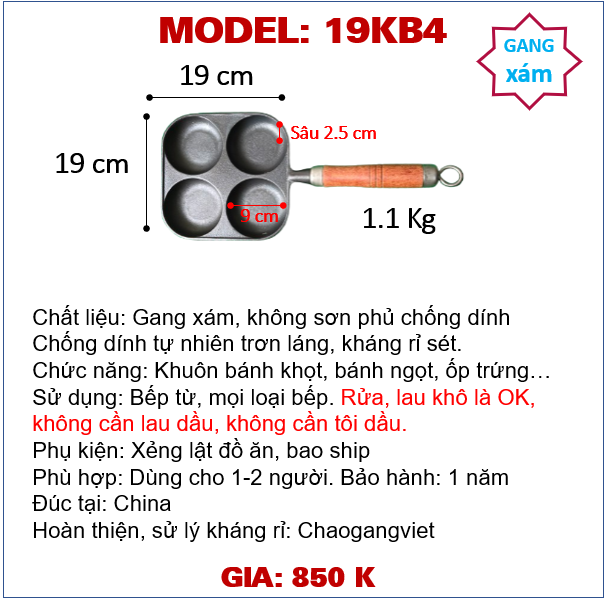 Kích thước 19cm x19cm, cao 2.5cm, cân nặng ~1.1 Kg
