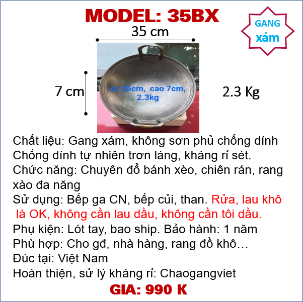 Chiếc chảo 35BX này được sản xuất tại Việt Nam