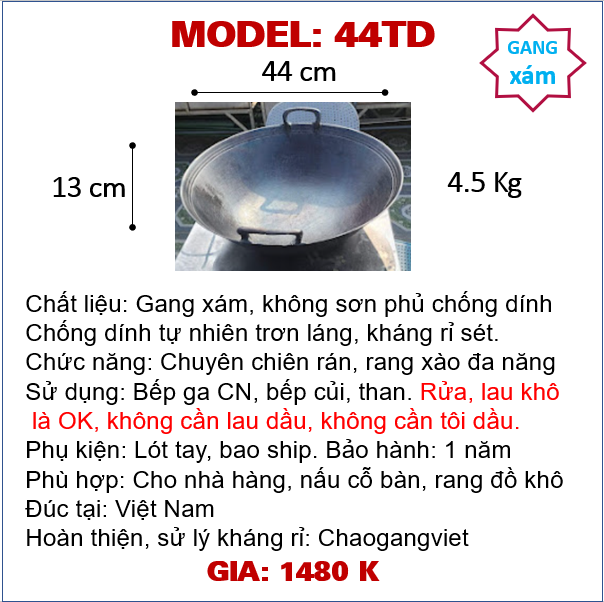 Chiếc chảo 44TD này được sản xuất tại Việt Nam